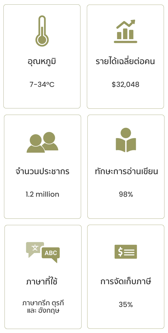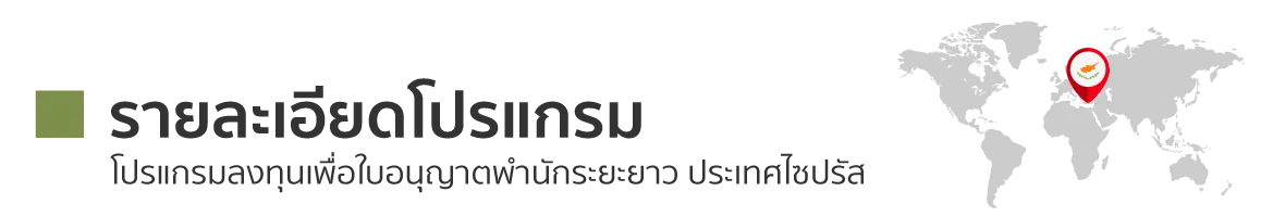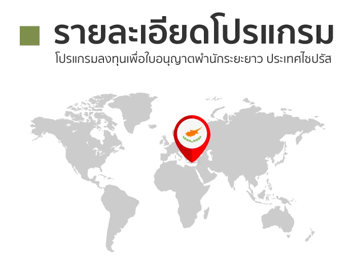 ไซปรัส ลงทุนเริ่มต้นที่ €300,000ระยะเวลาได้รับดำเนินการ 3 – 4 เดือน ประเทศเกาะในแถบเมดิเตอร์เรเนียนที่เปิดโอกาสให้ได้รับสิทธิ์พำนักต่ออายุได้ พร้อมเส้นทาง สู่การเป็นพลเมืองสหภาพยุโรป ผ่านตัวเลือกการลงทุนที่หลากหลาย นัดหมายเพื่อปรึกษา ติดต่อเรา รายละเอียดโปรแกรม ตัวเลือกการลงทุน ระยะเวลาดำเนินการ ข้อมูลประเทศ กลับไปหน้าทุกประเทศ กลับสู่บนสุด ต่ออายุได้ทุกๆ 2 ปี ขึ้นอยู่กับการเป็นเจ้าของทรัพย์สิน การเข้าถึงฟรีวีซ่า ไปยังประเทศในสหภาพยุโรปและกลุ่มประเทศเชงเกนที่มีใบอนุญาตมีถิ่นที่อยู่ของสหภาพยุโรป กำหนดพำนักขั้นต่ำ เยี่ยมเยือนประเทศ ไซปรัส ทุกๆ 2 ปี ขั้นตอนดำเนินการรวดเร็ว เพียงแค่ 3-4 เดือน คุณสมบัติของสมาชิกในครอบครัว ที่สามารถเป็นผู้ติดตามในโปรแกรมการลงทุนเพื่อใบอนุญาตพำนักระยะยาว ประเทศ ไซปรัส ตัวเลือกการลงทุน สำหรับโปรแกรมการลงทุนเพื่อใบอนุญาตพำนักระยะยาว ประเทศ ไซปรัส ติดต่อเรา ขั้นตอนและระยะเวลาการดำเนินการ ข้อมูลทั่วไปเกี่ยวกับประเทศ ขอข้อมูลเอกสารเพิ่มเติม ประวัติและวัฒนธรรม ไซปรัส วัฒนธรรมไซปรัสแบ่งออกเป็นสองส่วนหลัก คือ ชาวไซปรัสตุรกีที่นับถือศาสนาอิสลามในภาคเหนือ และชาวไซปรัสกรีกในภาคใต้ อารยธรรมของไซปรัสมีประวัติศาสตร์ยาวนานกว่า 10,000 ปี และเคยอยู่ภายใต้การปกครองของอาณาจักรใหญ่หลายแห่ง เช่น โรมัน อังกฤษ เวเนเชียน และออตโตมัน ก่อนจะได้รับเอกราชในปี 1960 มาเริ่มกันเลย! โปรดกรอกแบบฟอร์มพร้อมรายละเอียดให้ครบถ้วน แล้วเจ้าหน้าที่ของเราจะติดต่อกลับไปโดยเร็วที่สุด ที่อยู่ 622 เอ็มโพเพรียม ทาวเวอร์ , ชั้น 10, ถนนสุขุมวิท 24, คลองตัน, คลองเตย, กรุงเทพ 10110 โทรศัพท์ +66 63 439 8678 อีเมล bangkokoffice@premierconsultancy.com นัดหมายเพื่อปรึกษากับเราวันนี้ เพื่อพาสปอร์ตเล่มที่สองของคุณ ! นัดหมายเพื่อปรึกษา