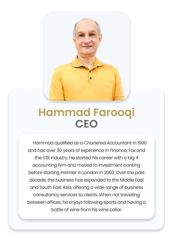 Premier’s team has always been led by experienced, qualified professionals who have brought with them knowledge and expertise from working in some of the biggest professional firms assisting multinational clients, with the aim of bringing VIP level, personalised services to every client